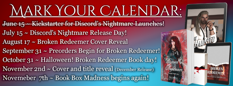 Reminder: If you want more details and prices for the Created Angel Chronicles, Book 3: Discord's Nightmare Preorder, head on over to the Kickstarter page and check it out.